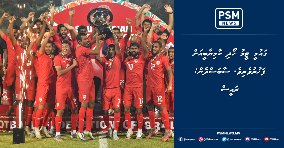 ސައުތު އޭޝިއަން ސުޕަ ކަޕް 2025 ގެ ޗެމްޕިއަންކަން ހޯދައި ދިވެހި ގައުމީ ޓީމުން ހޯދި ކާމިޔާބީއަށް ފަޚުރުވެރިވެވަޑައިގަންނަވާކަން ހާމަކުރައްވައި ރައީސުލްޖުމްހޫރިއްޔާ ޑރ. މުޙައްމަދު މުޢިއްޒު ޓީމަށް އައްސަރިބަހާއި ސާބަސް ދަންނަވައިފިއެވެ.