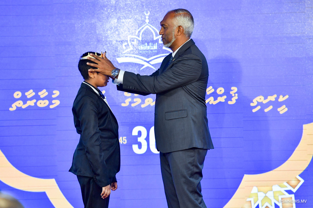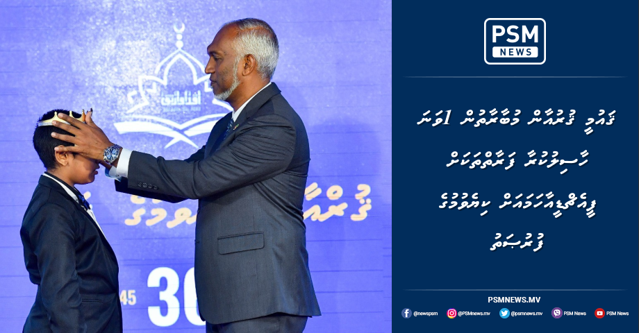ޤުރުއާން ކިޔެވުމުގެ ޤައުމީ މުބާރާތުގެ އެކި ބައިތަކުން 1ވަނަ ހާސިލުކުރާ ފަރާތްތަކަށް އެ ފަރާތަކުން ތަޢުލީމް ޙާސިލްކުރަން ބޭނުން ދާއިރާއަކުން ޕީއެޗްޑީއާއި ހަމަޔަށް އެފަރާތަކުން ބޭނުން ޤައުމަކުން ތަޢުލީމް ޙާސިލް ކުރުމަށް ރައީސުލްޖުމްހޫރިއްޔާގެ ޚާއްޞަ ސްކޮލަރޝިޕް ދިނުމަށް ރައީސުލްޖުމްހޫރިއްޔާ ޑރ. މުޙައްމަދު މުޢިއްޒު ނިންމަވައިފިއެވެ.