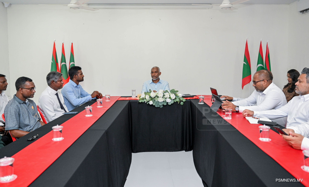ރައީސުލްޖުމްހޫރިއްޔާ ޑރ. މުޙައްމަދު މުޢިއްޒު ށ. ކަނޑިތީމު ކައުންސިލާއި، އ.ތ.މ ކޮމިޓީ އަދި ރަށުގެ މުއައްސަސާތަކުގެ އިސްވެރިންނާއި ބައްދަލުކުރެއްވުމުގެ ތެރެއިން / ފޮޓޯ: ރައީސް އޮފީސް