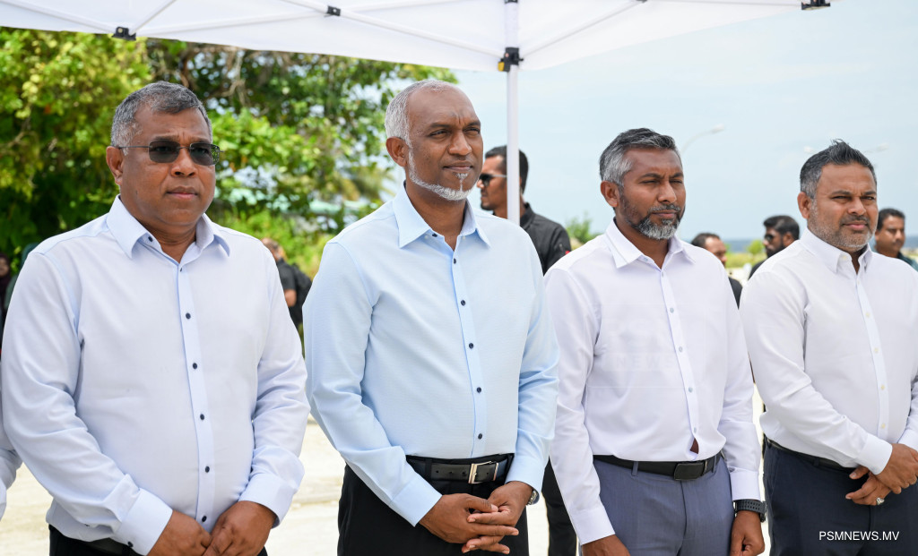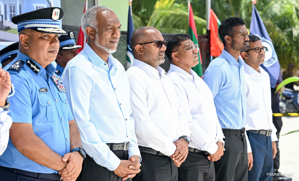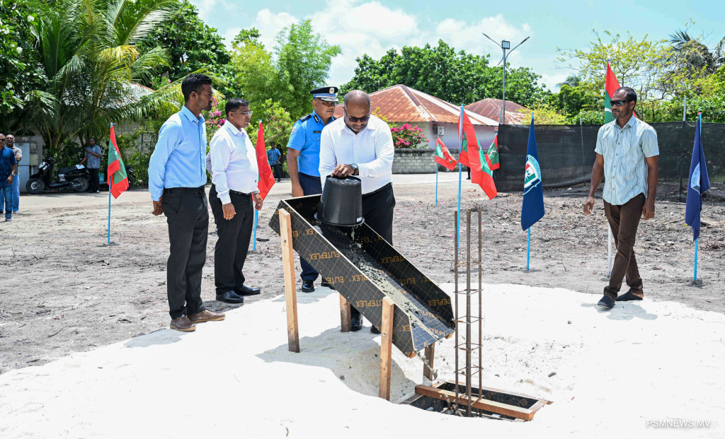 ށ. ކަނޑިތީމު ފުލުހުންގެ މަރުކަޒުގެ ބިންގާ އެޅުމުގެ ރަސްމިއްޔާތުގައި ރައީސުލްޖުމްހޫރިއްޔާ ޑރ. މުޙައްމަދު މުޢިއްޒު ބައިވެރިވެވަޑައިގަންނަވަނީ / ފޮޓޯ - ރައީސް އޮފީސް
