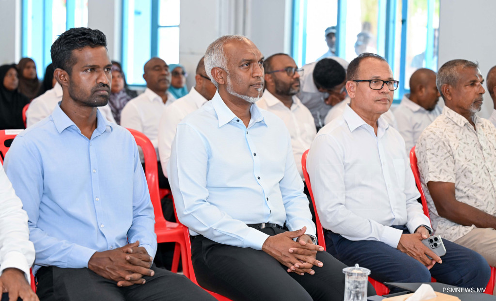 ރައީސުލްޖުމްހޫރިއްޔާ ޑރ. މުޙައްމަދު މުޢިއްޒު ށ. ކަނޑިތީމު ރައްޔިތުންނާއި ބައްދަލުކުރެއްވުމަށް ބޭއްވި ޖަލްސާގެ ތެރެއިން / ފޮޓޯ - ރައީސް އޮފީސް
