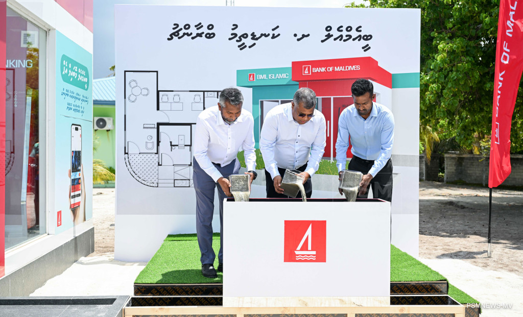 ށ. ކަނޑިތީމު ބީއެމްއެލް އިސްލާމިކް ބްރާންޗުގެ ބިންގާ އަޅުއްވާދެއްވީ ބީއެމްއެލްގެ ޗެއަރޕާސަން އަޙްމަދު ޢަލީ ޙަބީބު، ބީއެމްއެލްގެ ސީއީއޯ އަދި މެނޭޖިން ޑިރެކްޓަރ މުޙައްމަދު ޝަރީފް، އަދި އެރަށު ކައުންސިލްގެ ރައީސް އަޅުއްވާދެއްވަނީ / ފޮޓޯ - ރައީސް އޮފީސް