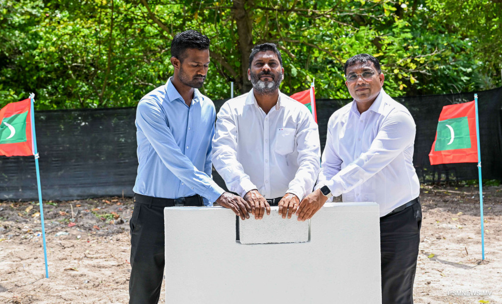 ށ. ކަނޑިތީމު އިމާރާތްކުރާ ފިޓްނެސް އެންޑް ރެކްރިއޭޝަން ސެންޓަރުގެ ބިންގާ ކުޅިވަރާއި ހަށިހެޔޮކަމާއި ބެހޭ ވަޒީރު އަބްދުﷲ ރާފިއު އަޅުއްވައިދެއްވަނީ / ފޮޓޯ - ރައީސް އޮފީސް