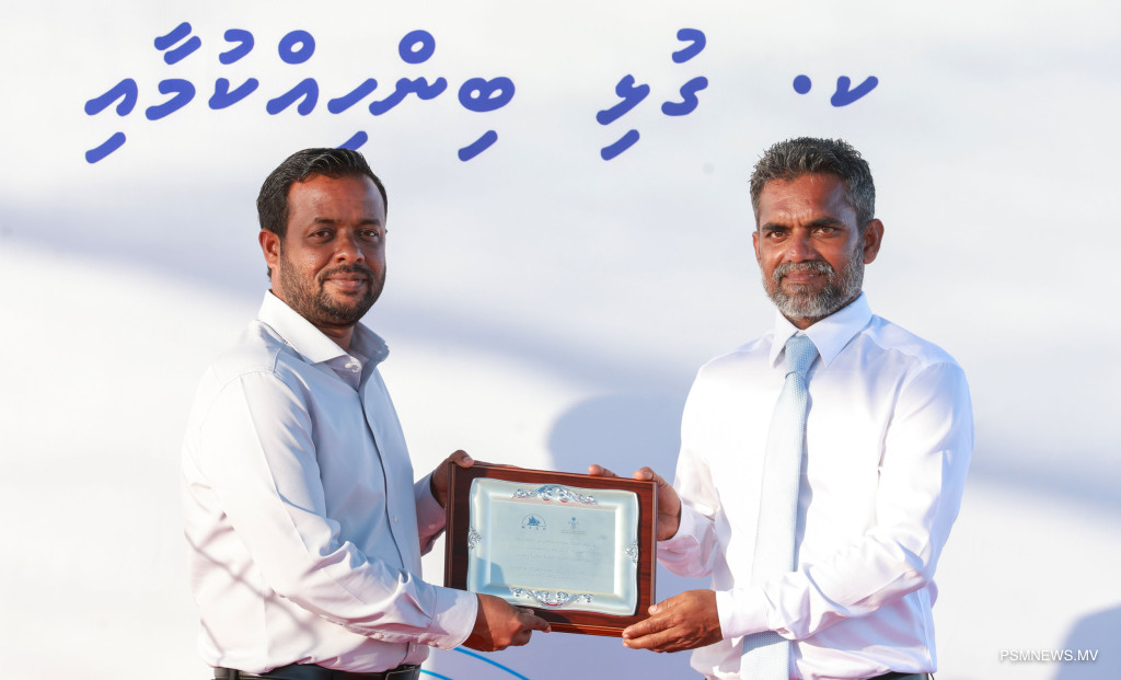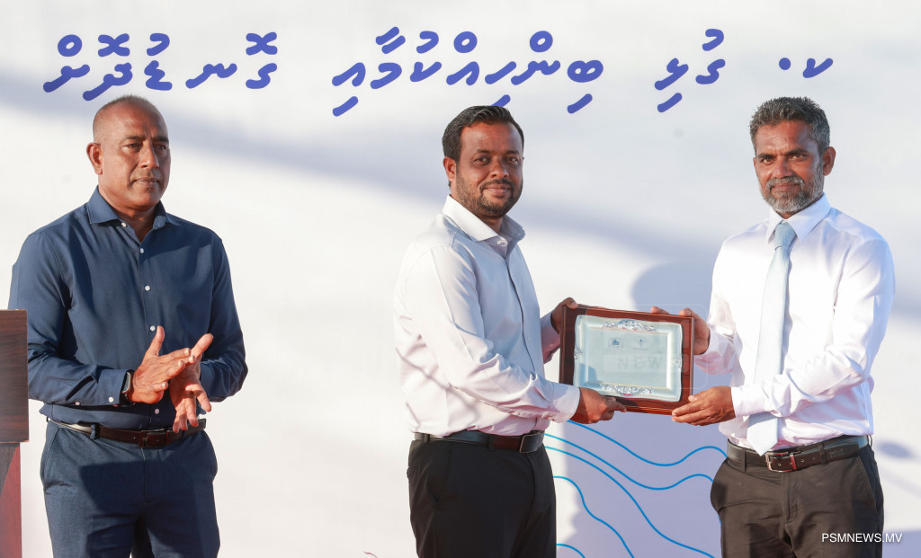 ކ. ގުޅީ ބިންހިއްކުމާއި ގޮނޑުދޮށް ހިމާޔަތްކުރުމުގެ މަޝްރޫޢުގެ ނިމުން ފާހަގަކުރުމަށް ސަރުކާރުގެ ފަރާތުން ގުޅީ ކައުންސިލާ ހަނދާނީ ފިލާ، އިމާރާތްކުރުމާއި ގެދޮރުވެރިކަމާ ބިނާރަބެހޭ ވަޒީރު ޑރ. ޢަބްދުﷲ މުއްޠަލިބު ގުޅީ ކައުންސިލްގެ ރައީސް މޫސާ ސަފީލްއާއި ހަވާލުކޮށް ދެއްވަނީ / ފޮޓޯ: މުޙައްމަދު ވަޙީދު، ޕީއެސްއެމް ނިއުސް