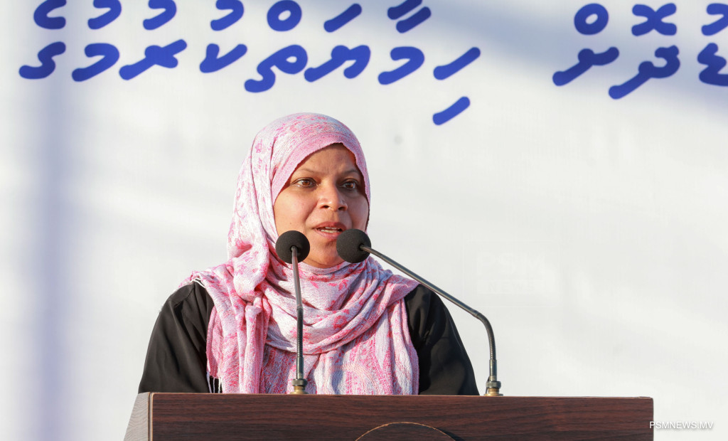 ރައީސުލްޖުމްހޫރިއްޔާ ޑރ. މުޙައްމަދު މުޢިއްޒު ކ. ގުޅި ރައްޔިތުންނާ ބައްދަލުކުރެއްވުމަށް ބޭއްވި ޖަލްސާގައި ހުރާ ދާއިރާގެ މެންބަރު ޑރ. އަނާރާ ނަޢީމް ވާހަކަފުޅު ދައްކަވަނީ / ފޮޓޯ: މުޙައްމަދު ވަޙީދު، ޕީއެސްއެމް ނިއުސް