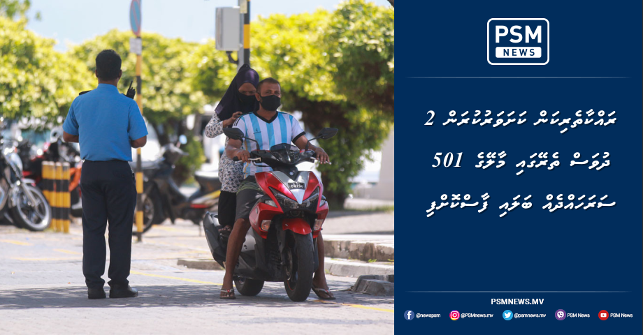 ދިވެހި ފުލުހުންގެ ޚިދުމަތުގެ ގޭންގް ކްރައިމް ސަޕްރެޝަން ޑިޕާރޓްމަންޓުން ރައްކާތެރިކަން ކަށަވަރުކުރަން 2 ދުވަސް ތެރޭގައި މާލޭގެ 501 ސަރަހައްދެއް ބަލައި ފާސްކޮށްފިއެވެ.