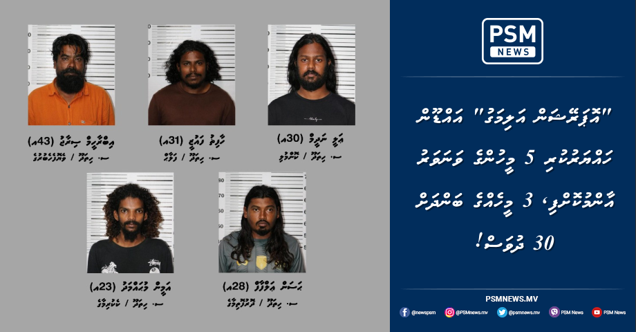 "އޮޕަރޭޝަން އަލިމަގު" އައްޑޫން ހައްޔަރުކުރި 5 މީހުންގެ ވަނަވަރު އާންމުކޮށްފި، 3 މީހެއްގެ ބަންދަށް 30 ދުވަސް!