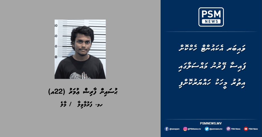 ފުލުހުން ވިދާޅުވީ، މިި މައްސަލާގައި ހައްޔަރުކޮށްފައިވަނީ ހމ. ފަރުމާވިލާ / މާލެ، ޙުސައިން ފާރިޝް ޢުމަރު (22އ) ކަމަށެވެ. އަދި އޭނާ ހައްޔަރުކޮށްފައިވަނީ، ނޮވެމްބަރު މަހުގެ 30 ވަނަ ދުވަހު އެންޓި ސްކޭމް ސެންޓަރަށް ހުށަހެޅުނު މައްސަލައާ ގުޅިގެން ކޯޓު އަމުރެއްގެ ދަށުން ޑިސެންބަރު 17 ވަނަ ދުވަހު ކަމަށްވެސް ފުލުހުން މައުލޫމާތުދެއްވައެވެ.