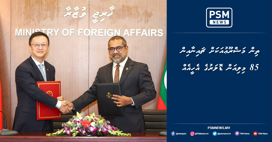 ޗައިނާ ސަރުކާރުގެ އެހީގައި ކުރިއަށް ގެންދާ 3 މަޝްރޫޢުއަކަށް އެ ޤައުމުން 85 މިލިޔަން ޑޮލަރުގެ ހިލޭ އެހީއެއް ދިނުމަށް ނިންމައި، އެކަމާއި ގުޅޭ އެއްބަސްވުމުގައި ސޮއިކޮށްފިއެވެ.