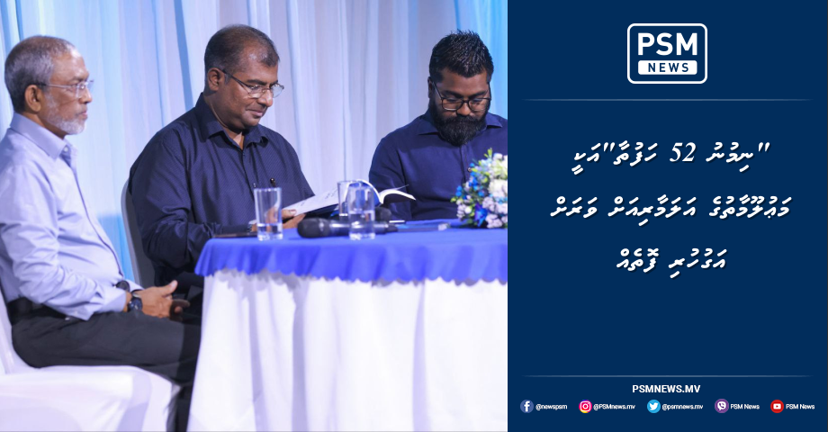 ޕީއެސްއެެމް ނިއުސްގެ "ނިމުނު 52 ހަފުތާ" ފޮތް ނެރުމަށް ބޭއްވި ރަސްމިއްޔާތު ޝަރަފުވެރިކޮށްދެއްވައި ދިވެހިބަހާއި ސަގާފަތާއި ތަރިކައާބެހޭ ވަޒީރު އާދަމް ނަސީރު އިބްރާހިމް ވިދާޅުވީ ރައީސުލްޖުމްހޫރިއްޔާ ޑރ.މުޙައްމަދު މުޢިއްޒު ޤައުމު ބިނާކުރެއްވުމުގައި ގެންގުޅުއްވާ މުހިންމު އެއް އަސާސަކީ ޤައުމާ އެއްކޮޅަށް ވިސްނާ ދިވެހި ޤައުމު، ދިވެހިންނަށް އެނގޭގޮތަށް ދިވެހި ތަރިކަ އިއާދަކުރުމަށް ސިކުނޑިތައް ބިނާކުރުން ކަމަށެވެ. އެ މަސައްކަތުގެ ތެރެއިން ކިޔުންތެރިކަން އާލާ ކުރުމަކީ މުހިންމު ކަމެއް ކަމަށާއި ފޮތް ޗާޕުކުރުމާއި ކިޔުންތެރިކަން ފަަހަކަށް އައިސް ނެތެމުން އަންނައިރު ޕީއެސްއެމް ނިއުސްއިން ނެރުނު ފޮތަކީ އެކަން އިއާދަކުރުމަށް ކުރެވުނު މުހިންމު މަސައްކަތެއްކަމަށް ވަޒީރު ވިދާޅުވިއެވެ.