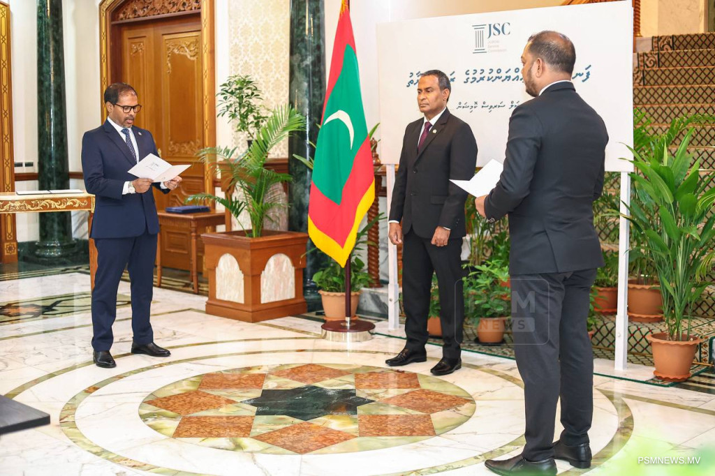 މިގޮތުން މަޤާމުގެ ހުވައި ލައިދެއްވީ ދިވެހިރާއްޖޭގެ ސުޕްރީމްކޯޓުގައި ބޭއްވުނު ރަސްމިއްޔާތުގައި އެ ކޯޓުގެ ފަނޑިޔާރު ޢަބްދުالله ޙަމީދުއެވެ.