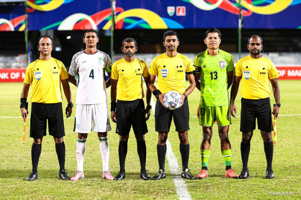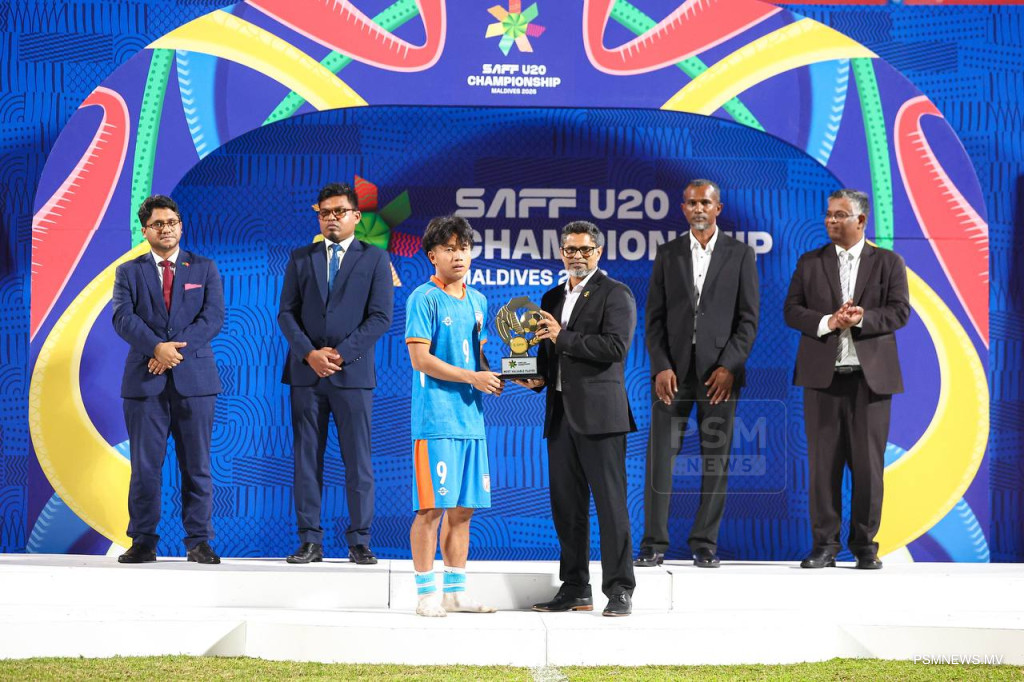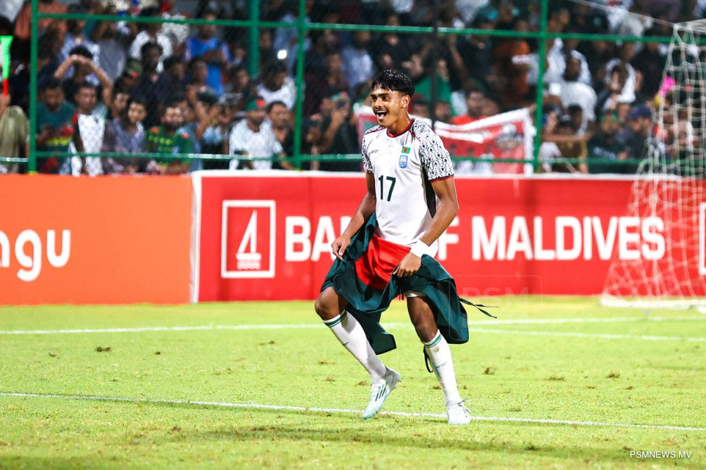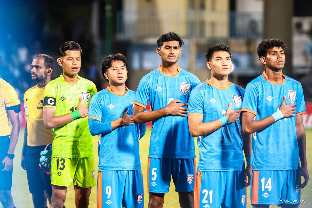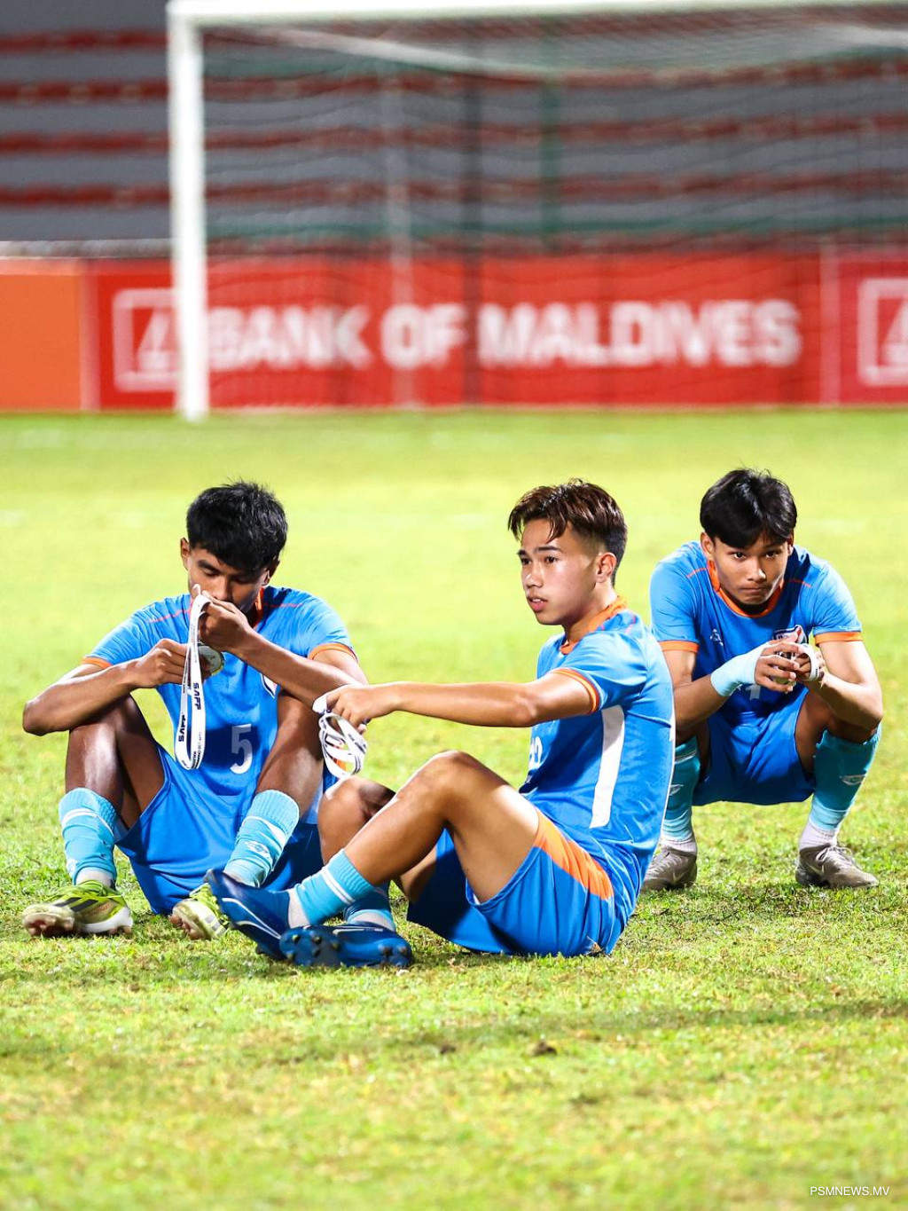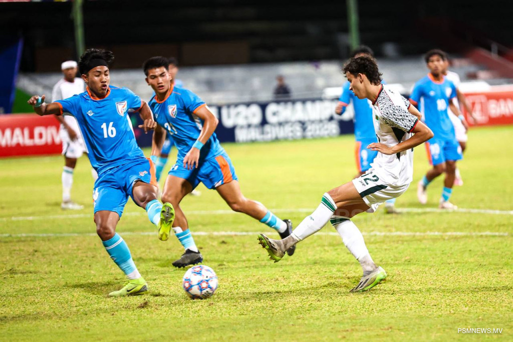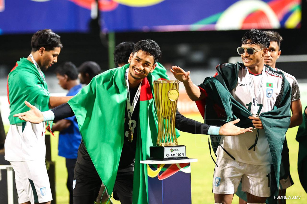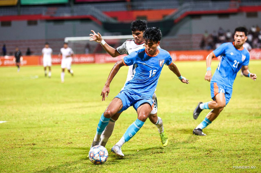 20 އަހަރުން ދަށުގެ ސާފް ޗެމްޕިއަންޝިޕްގެ ފައިނަލުގައި އިންޑީއާއި ބަންގްލަދޭޝް ބައްދަލުކުރި މެޗުގެ ތެރެއިން. ޕެނަލްޓީގައި ބަންގްލަދޭޝްއިން ކުރިހޯދީ 3-4 އިން އިންޑިއާ ބަލިކޮށްގެންނެވެ. ފޮޓޯ: ޖަލްވާން ޖަމީލް، ޕީއެސްއެމް ނިއުސް