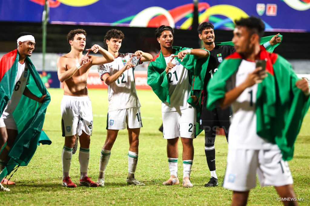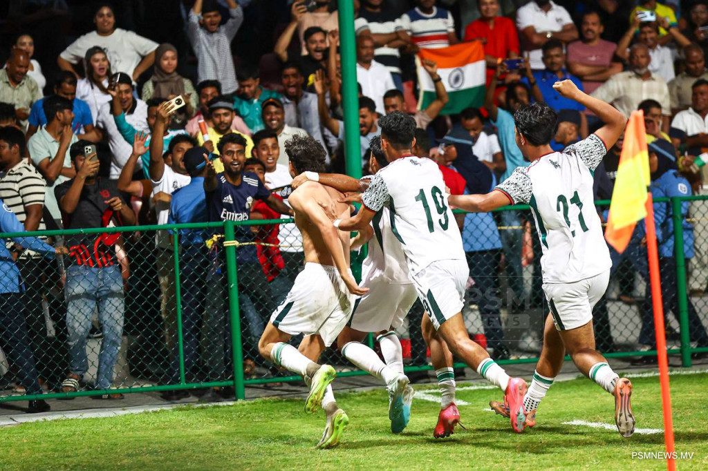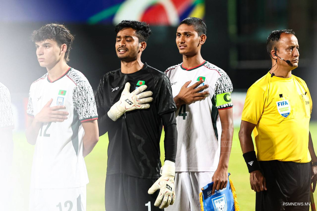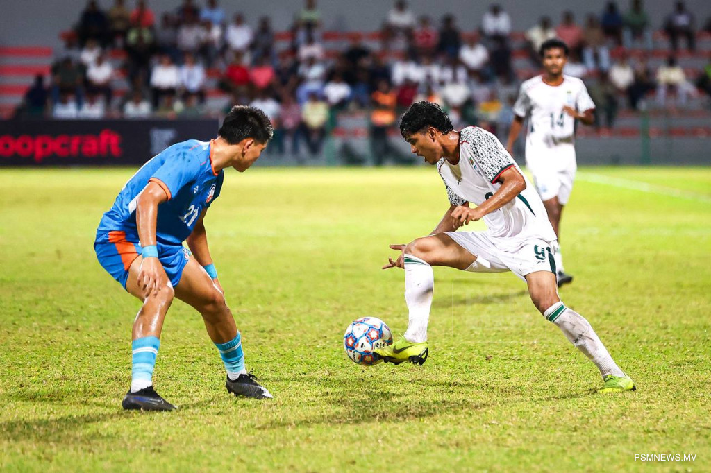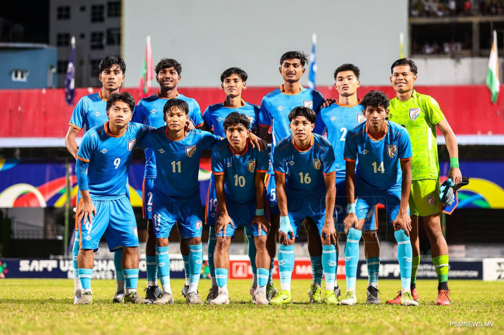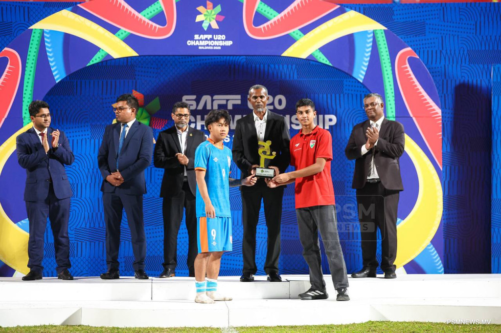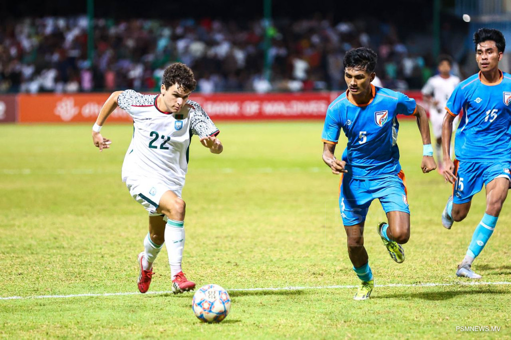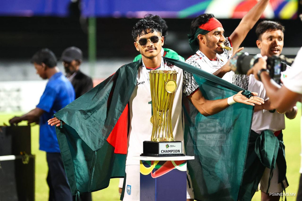 20 އަހަރުން ދަށުގެ ސާފް ޗެމްޕިއަންޝިޕްގެ ފައިނަލުގައި އިންޑީއާއި ބަންގްލަދޭޝް ބައްދަލުކުރި މެޗުގެ ތެރެއިން. ޕެނަލްޓީގައި ބަންގްލަދޭޝްއިން ކުރިހޯދީ 3-4 އިން އިންޑިއާ ބަލިކޮށްގެންނެވެ. ފޮޓޯ: ޖަލްވާން ޖަމީލް، ޕީއެސްއެމް ނިއުސް