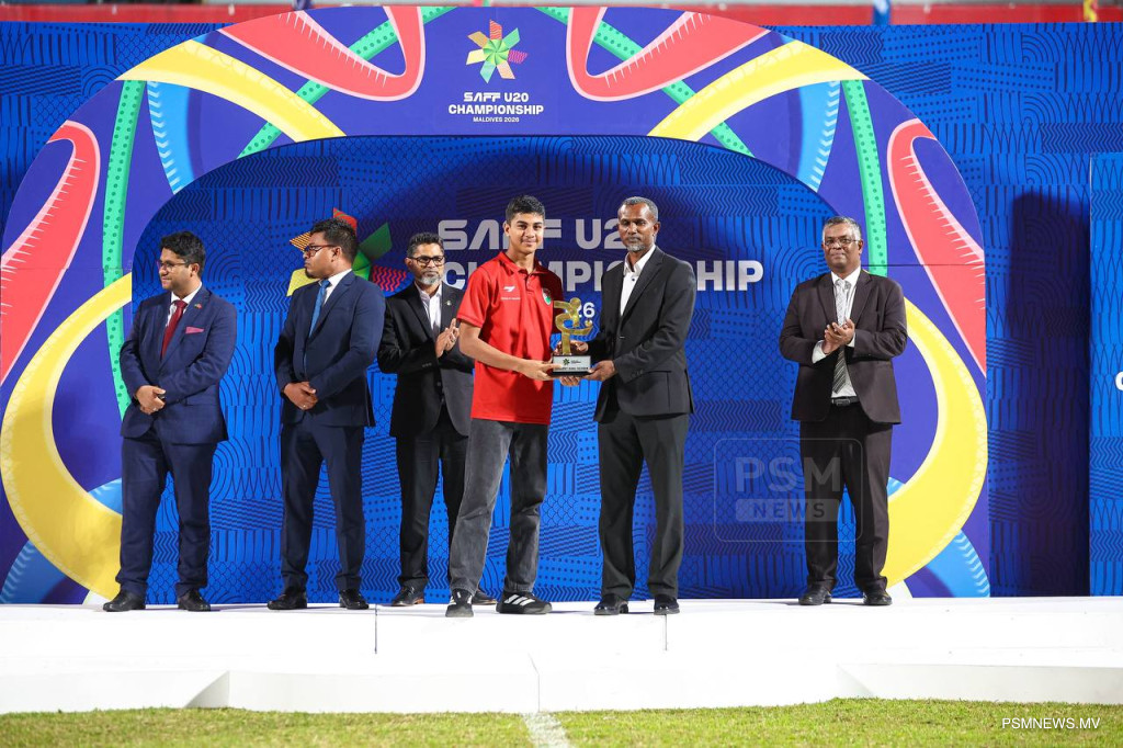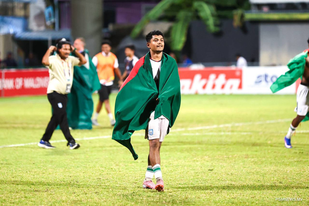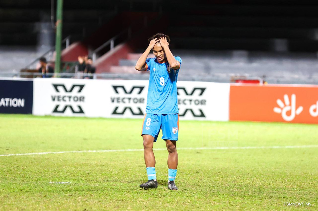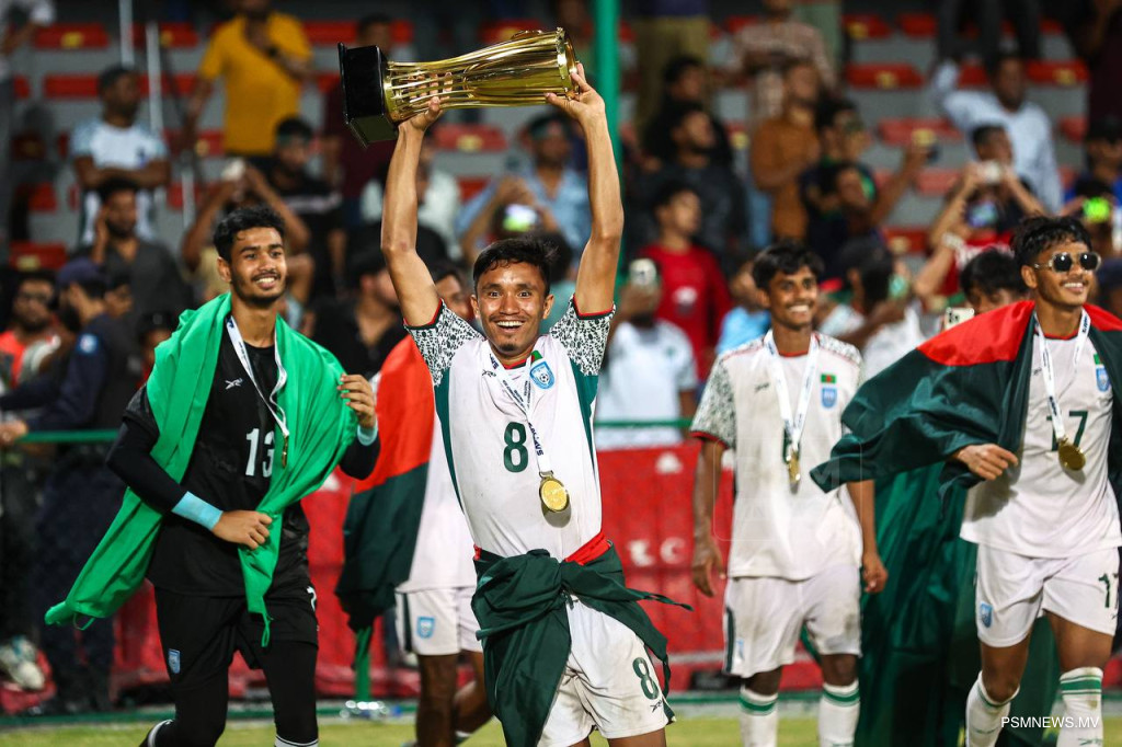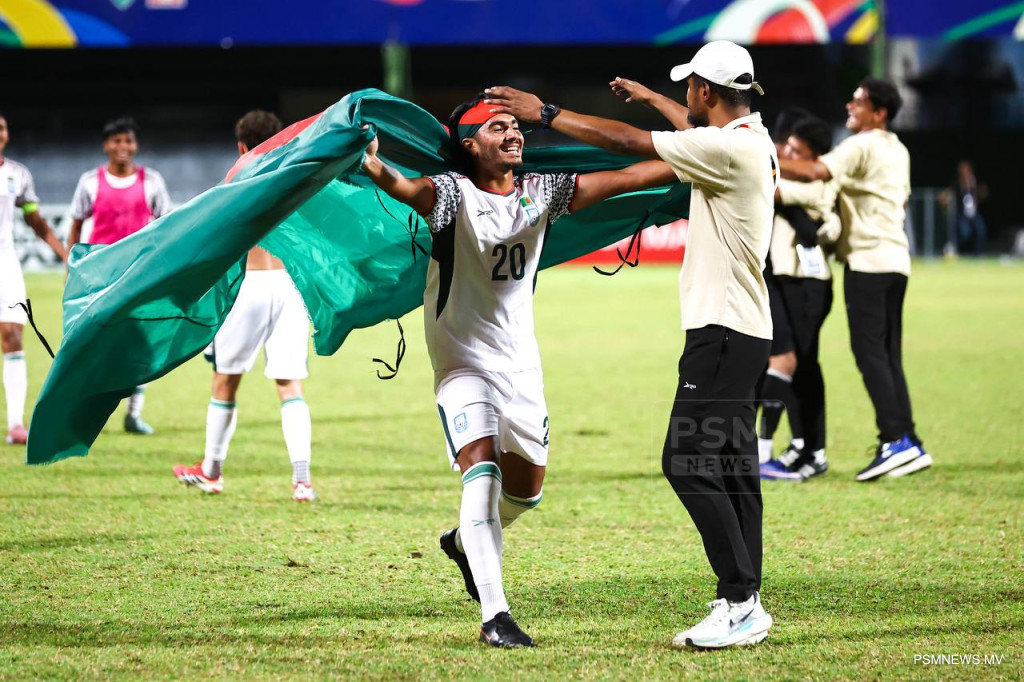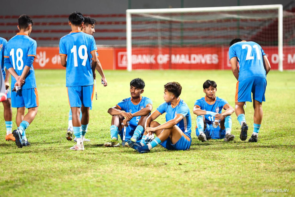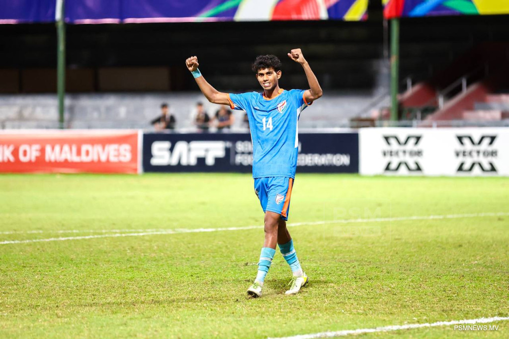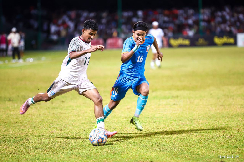 20 އަހަރުން ދަށުގެ ސާފް ޗެމްޕިއަންޝިޕްގެ ފައިނަލުގައި އިންޑީއާއި ބަންގްލަދޭޝް ބައްދަލުކުރި މެޗުގެ ތެރެއިން. ޕެނަލްޓީގައި ބަންގްލަދޭޝްއިން ކުރިހޯދީ 3-4 އިން އިންޑިއާ ބަލިކޮށްގެންނެވެ. ފޮޓޯ: ޖަލްވާން ޖަމީލް، ޕީއެސްއެމް ނިއުސް