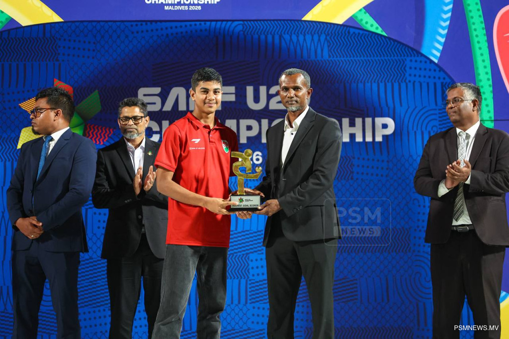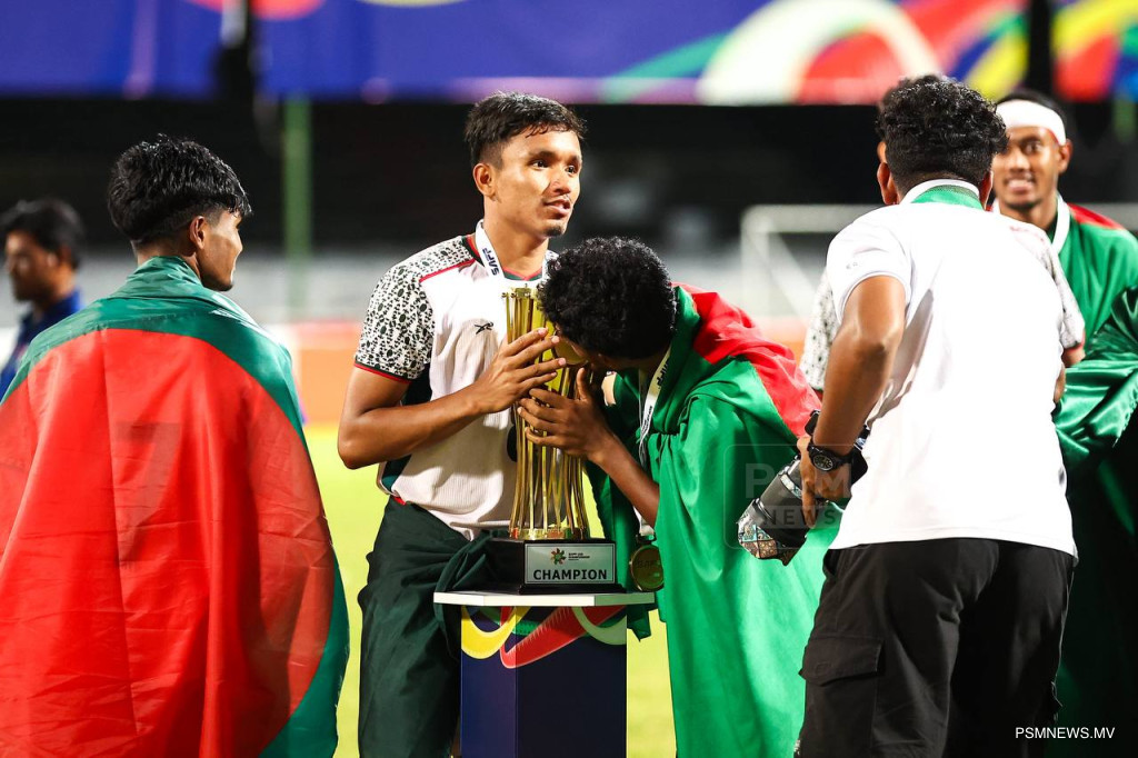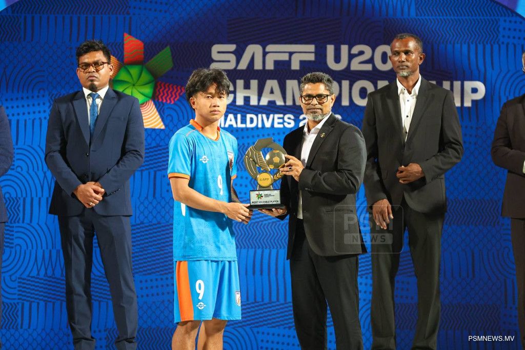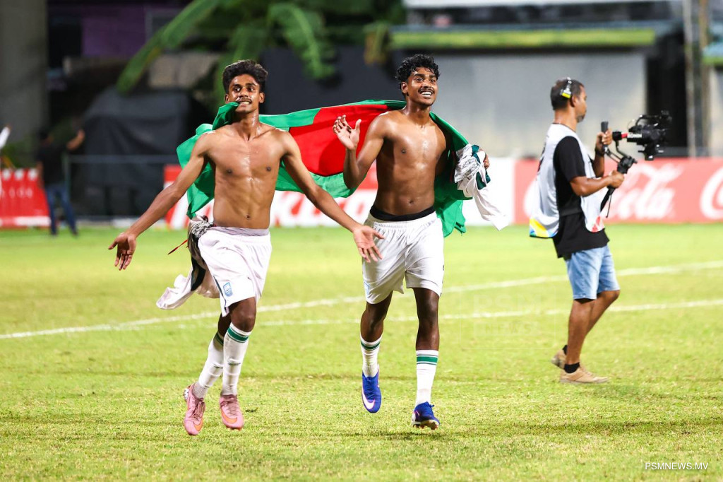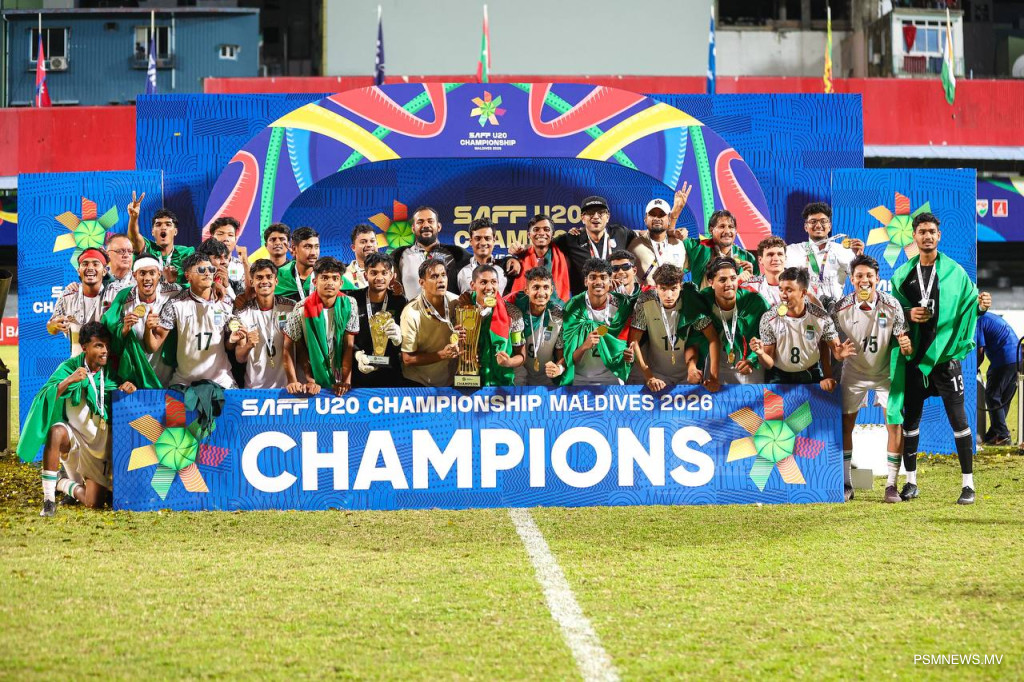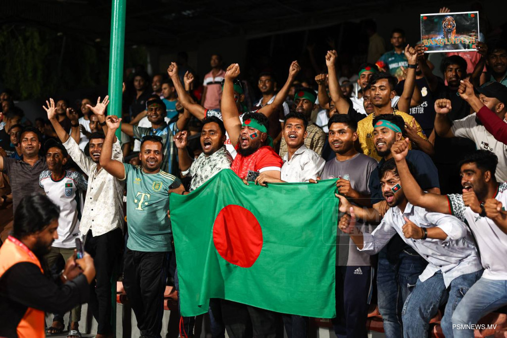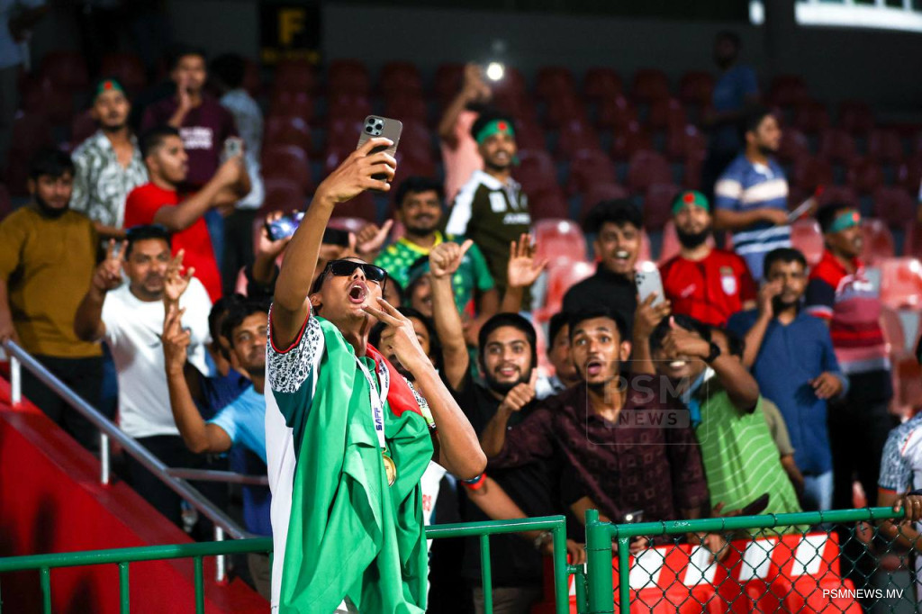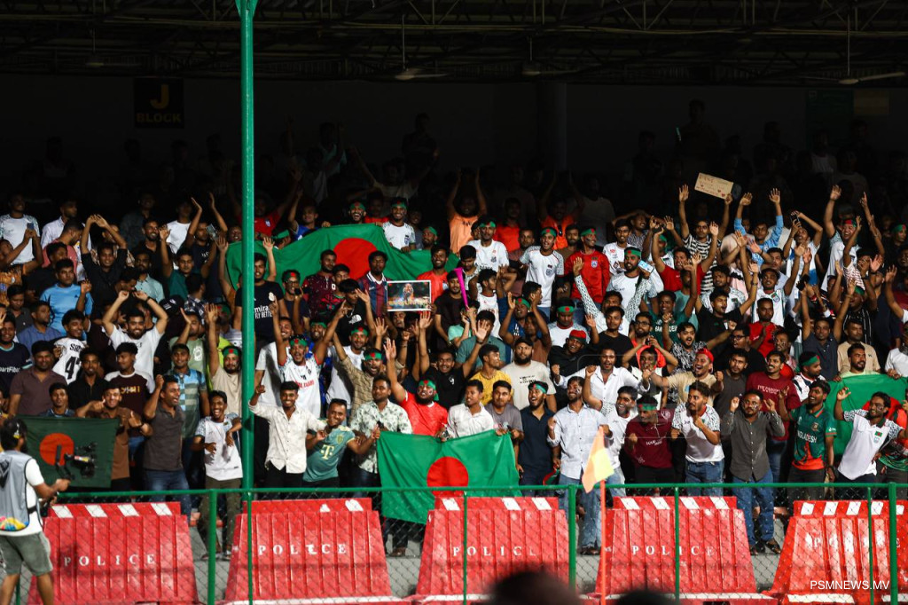 20 އަހަރުން ދަށުގެ ސާފް ޗެމްޕިއަންޝިޕްގެ ފައިނަލުގައި އިންޑީއާއި ބަންގްލަދޭޝް ބައްދަލުކުރި މެޗުގެ ތެރެއިން. ޕެނަލްޓީގައި ބަންގްލަދޭޝްއިން ކުރިހޯދީ 3-4 އިން އިންޑިއާ ބަލިކޮށްގެންނެވެ. ފޮޓޯ: ޖަލްވާން ޖަމީލް، ޕީއެސްއެމް ނިއުސް