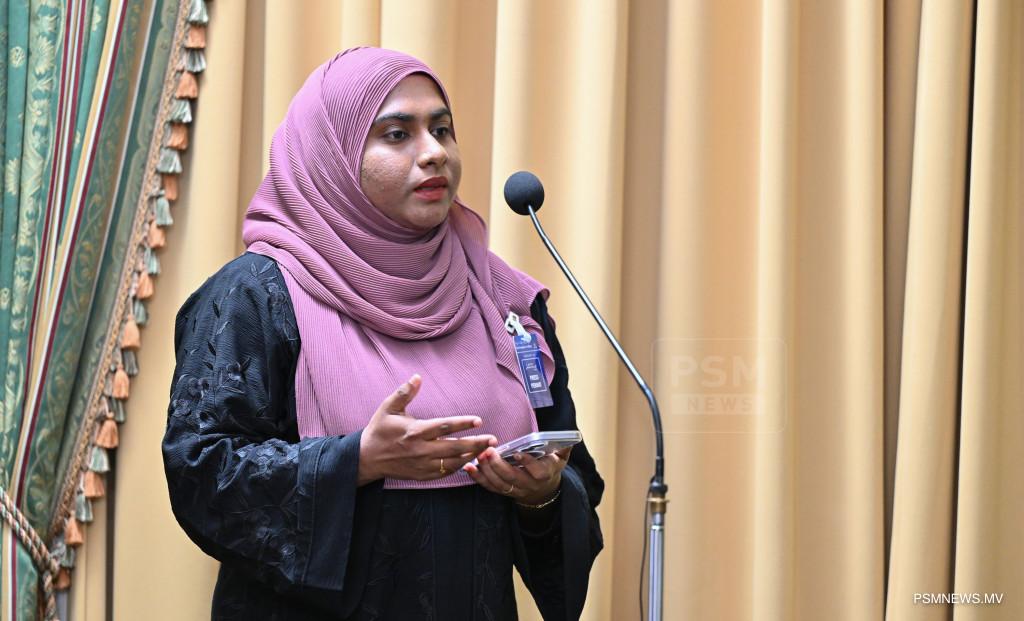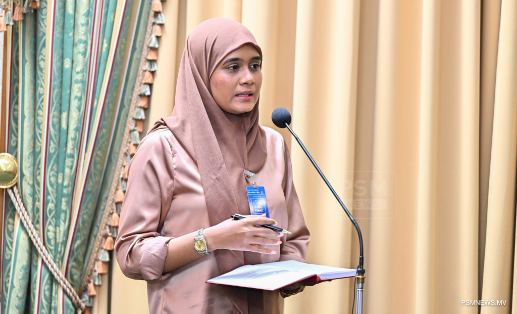 މެދުއިރުމަތީގައި ކުރަމުންދާ ހަނގުރާމައާ ގުޅިގެން ރައީސުލްޖުމްހޫރިއްޔާ އުފައްދަވާފައިވާ ވަޒީރުންގެ ފެންވަރުގެ ކޮމެޓީން ބޭއްވި ނޫސްވެރިންގެ ބައްދަލުވުމުގައި އިސްލާމީ ކަންތައްތަކާ ބެހޭ ވަޒީރު ޑރ. މުޙައްމަދު ޝަހީމް ޢަލީ ސަޢީދު ވާހަކަފުޅު ދައްކަވަނީ ފޮޓޯ: ރައީސް އޮފީސް