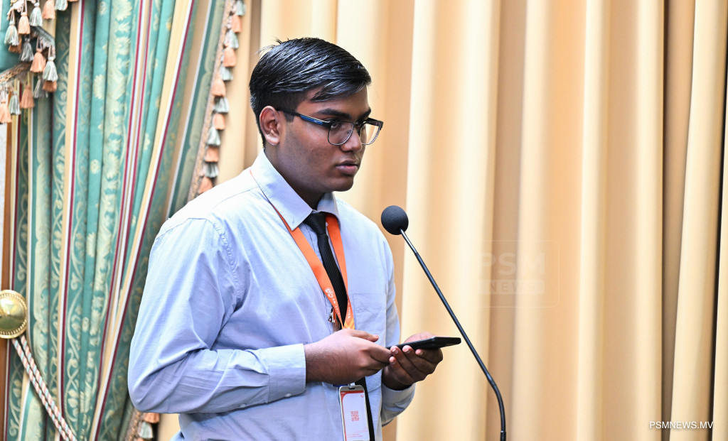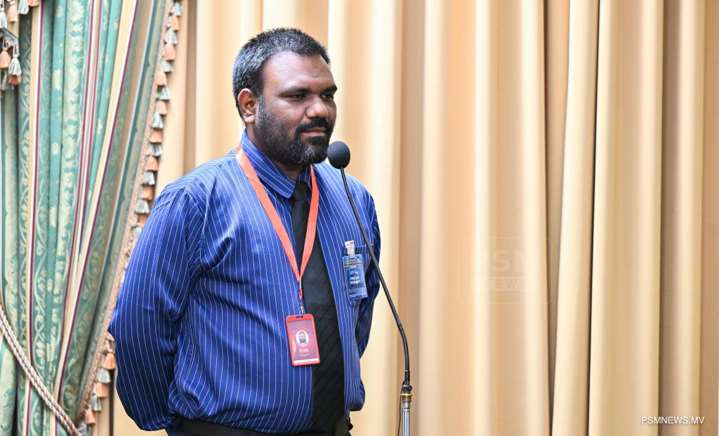 މެދުއިރުމަތީގައި ކުރަމުންދާ ހަނގުރާމައާ ގުޅިގެން ރައީސުލްޖުމްހޫރިއްޔާ އުފައްދަވާފައިވާ ވަޒީރުންގެ ފެންވަރުގެ ކޮމެޓީން ބޭއްވި ނޫސްވެރިންގެ ބައްދަލުވުމުގައި ނޫސްވެރިން ސުވާލު ކުަރަނީ. ފޮޓޯ: ރައީސް އޮފީސް