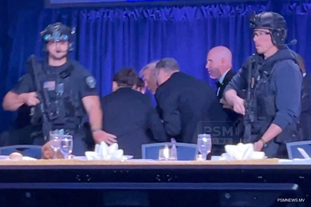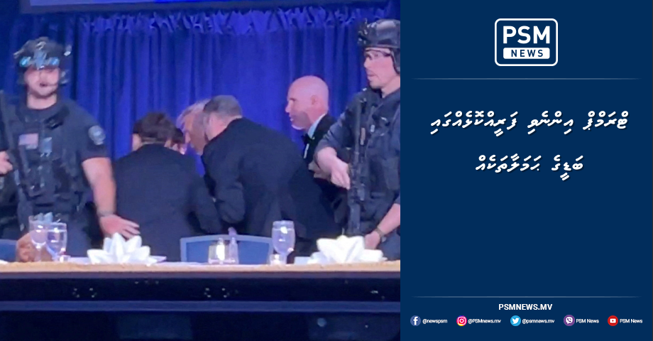 އެމެރިކާގެ ވެރިރަށް ވޮޝިންގްޓަންގެ ހިލްޓަން ހޮޓަލުގައި ބޭއްވި ވައިޓް ހައުސް ކޮރެސްޕޮންޑެންޓުންގެ ޖަމުޢިއްޔާގެ އަހަރީ ފަރީއްކޮޅުގައި ބަޑީގެ ޙަމަލާތަކެއް ދިނުމާ ގުޅިގެން ރައީސް ޑޮނަަލްޑް ޓްރަމްޕް ސަލާމަތްކޮށް، ރައްކާތެރި ތަނަކަށް ބަދަލުކޮށްފިއެވެ. ޝޮޓްގަންއަކާއި އިތުރު ހަތިޔާރުތަކެއް އަޅައިގެން ހުރި މީހާ ޙަމަލާދީފައި ވަނީ، ސީކްރެޓް ސަރވިސްގެ އޮފިސަރަކަށެވެ. އޭނާގެ ޙާލު ރަނގަޅުކަން ޓްރަމްޕް ވަނީ ފަހުން ކަށަވަރު ކޮށްދެއްވާފައެވެ.