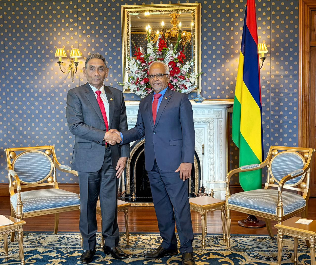 Following the ceremony, High Commissioner Imad conveyed warm greetings and sincere felicitations from President Dr. Mohamed Muizzu to President Gokhool, as well as to the Government and the people of Mauritius.