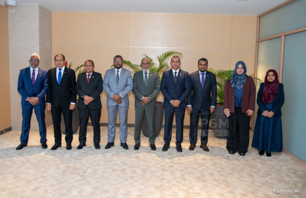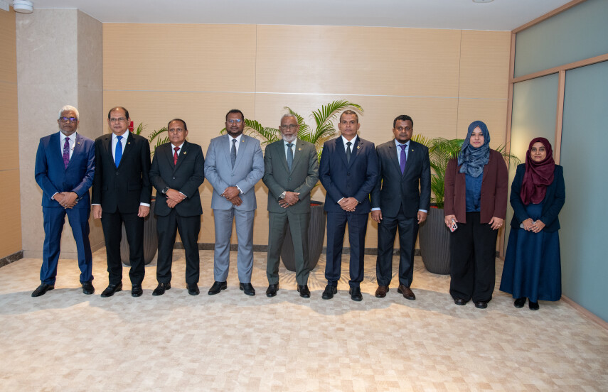 Also part of the delegation are Mohamed Rasheed, Deputy Secretary General; Ahmed Nihan Hussain Manik, Chief of Bureau; and Zuyyina Badhree, Director of Foreign Relations.