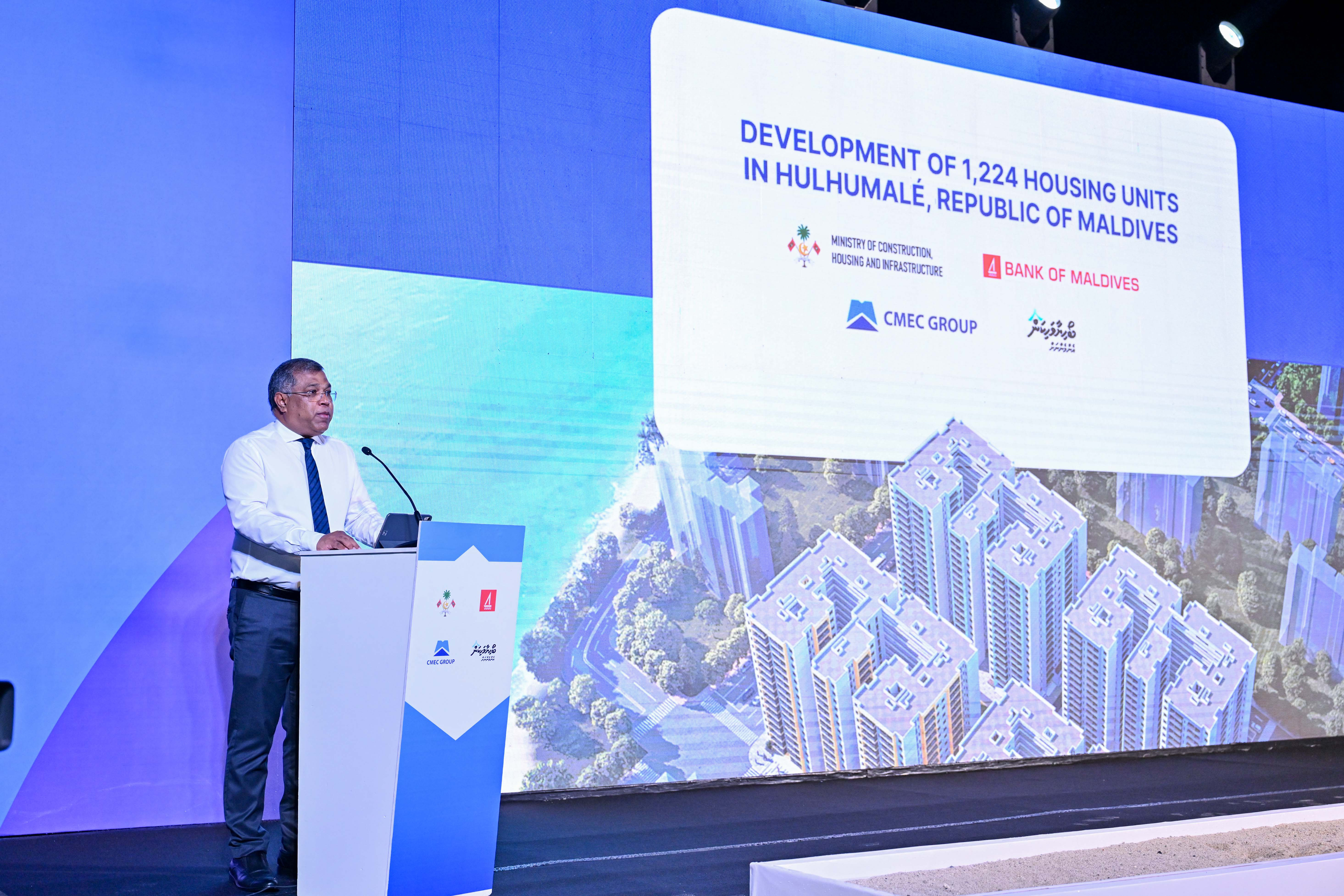 The foundation stone for the 1,224 housing units being developed by CMEC in Hulhumale’ Phase III was laid during a ceremony presided over by President Dr Mohamed Muizzu on 21 March.