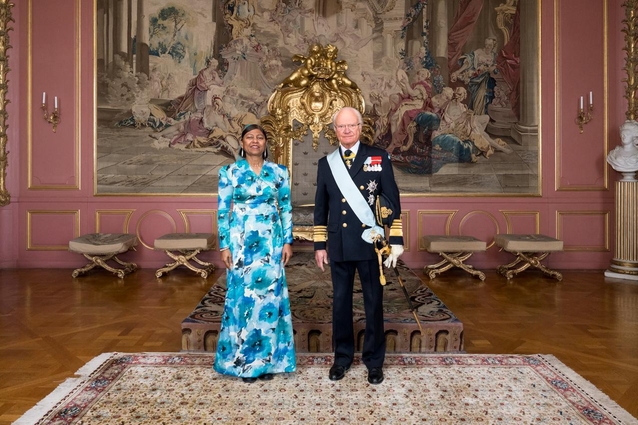 The newly appointed Non-Resident Ambassador Extraordinary and Plenipotentiary of the Republic of Maldives to the Kingdom of Sweden, Aishath Shaan Shakir, has presented her Letters of Credence to the King of Sweden, His Majesty King Carl XVI Gustaf.